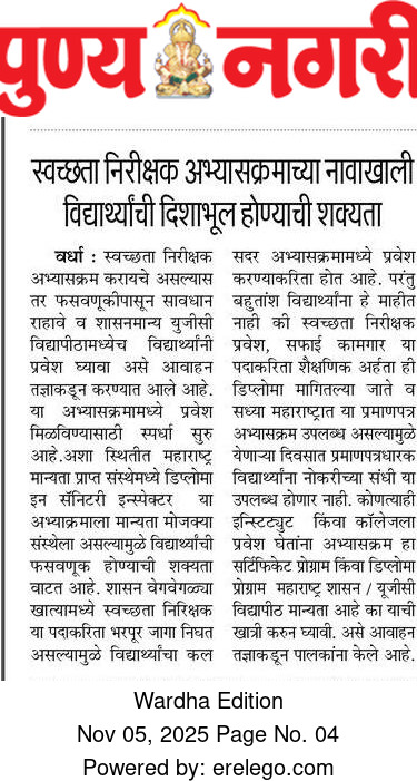 स्वच्छता निरीक्षक अभ्यासक्रमाच्या नावाखाली विद्यार्थ्यांची दिशाभूल होण्याची शक्यता