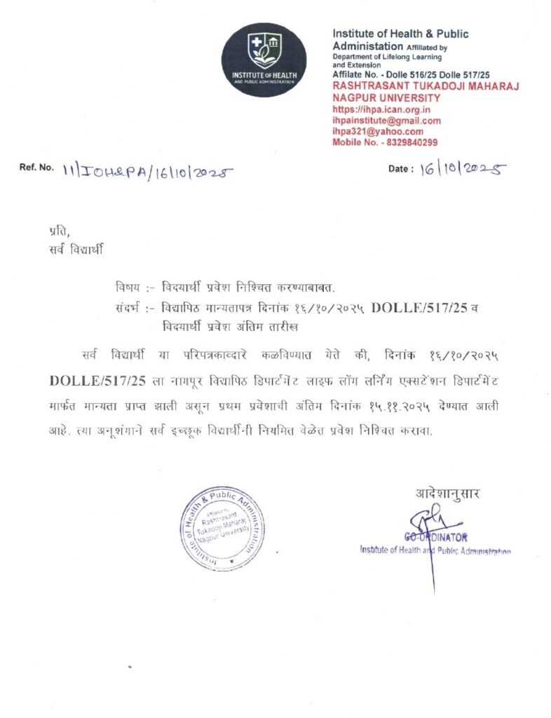 स्वच्छता निरीक्षक अभ्यासक्रमाच्या नावाखाली विद्यार्थ्यांची दिशाभूल होण्याची शक्यता